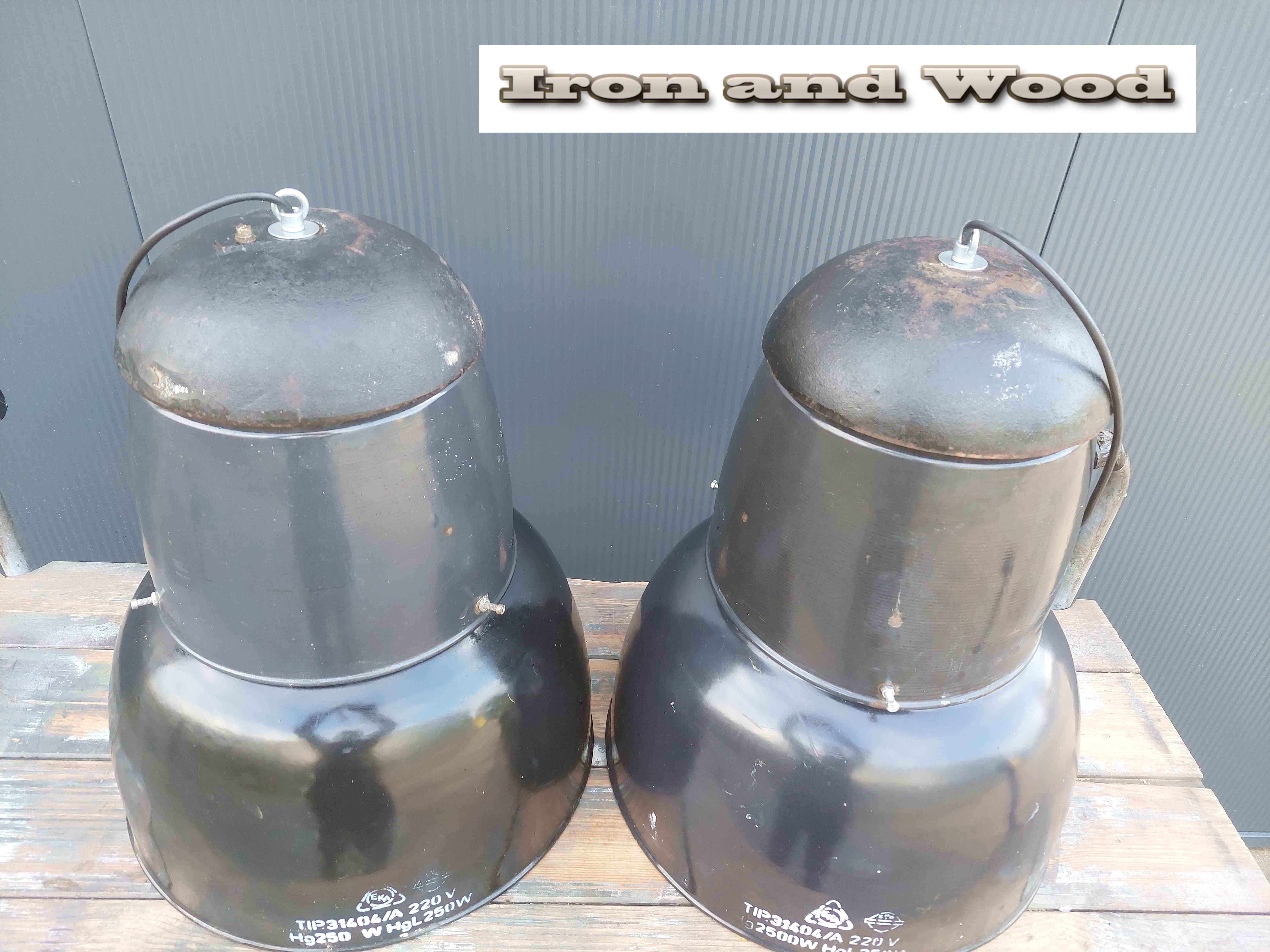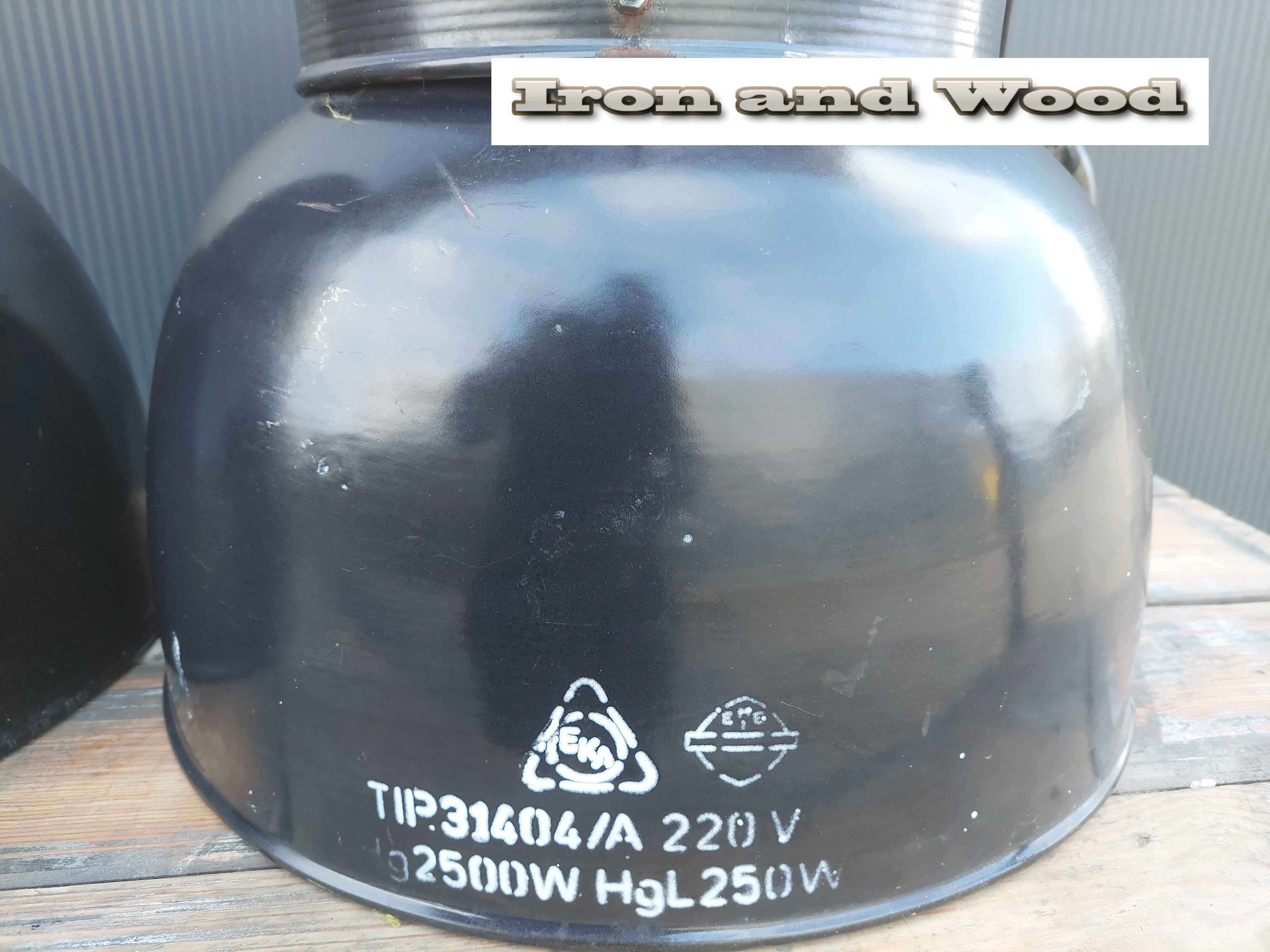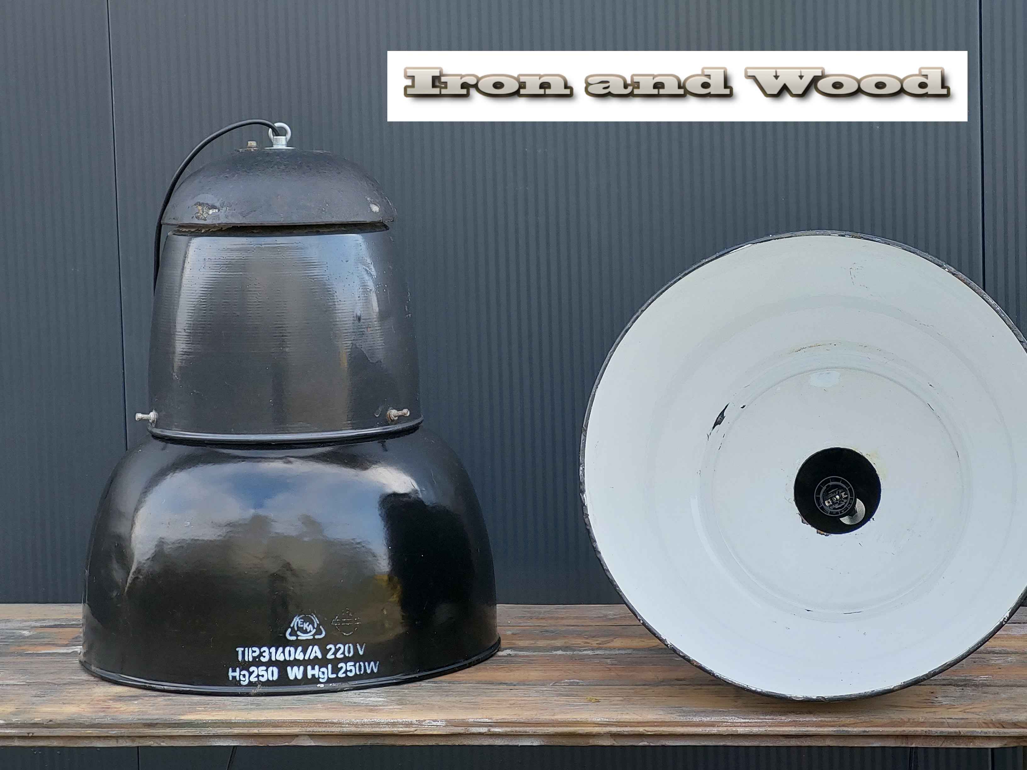 Grote zwarte industriele emaille lampen/ fabriekslampen met opdruk