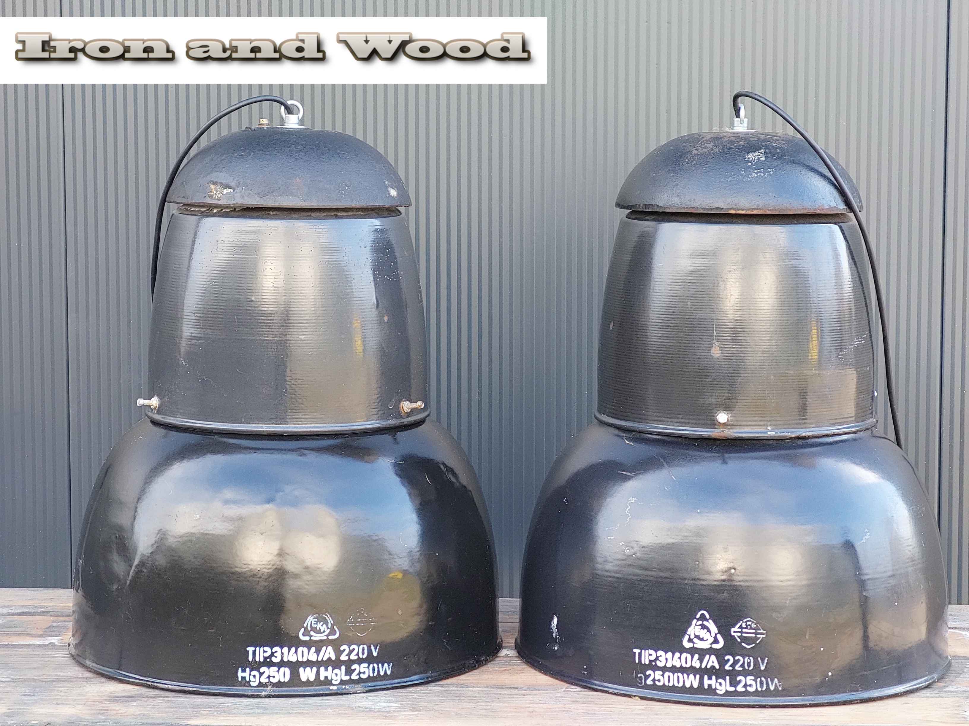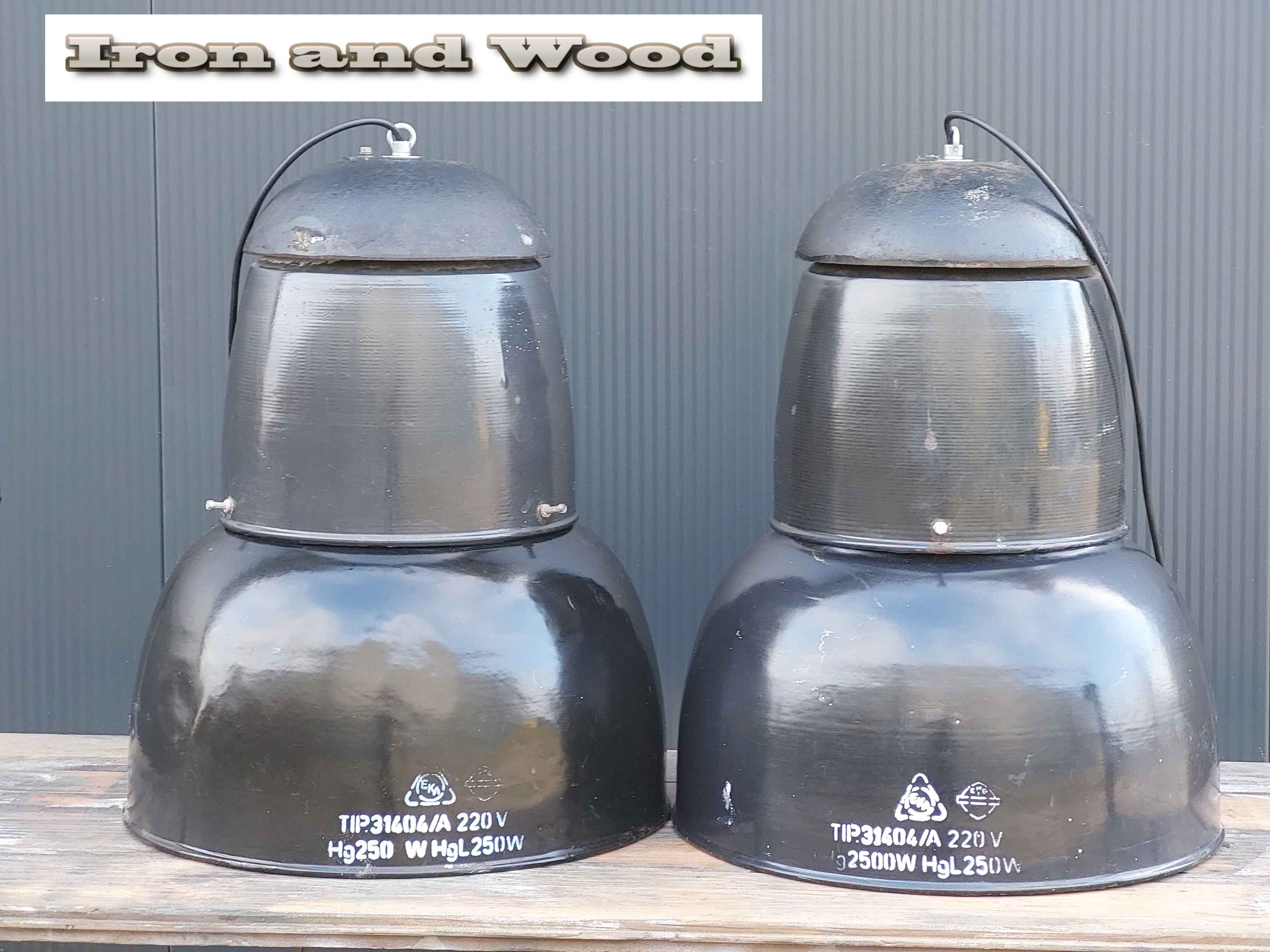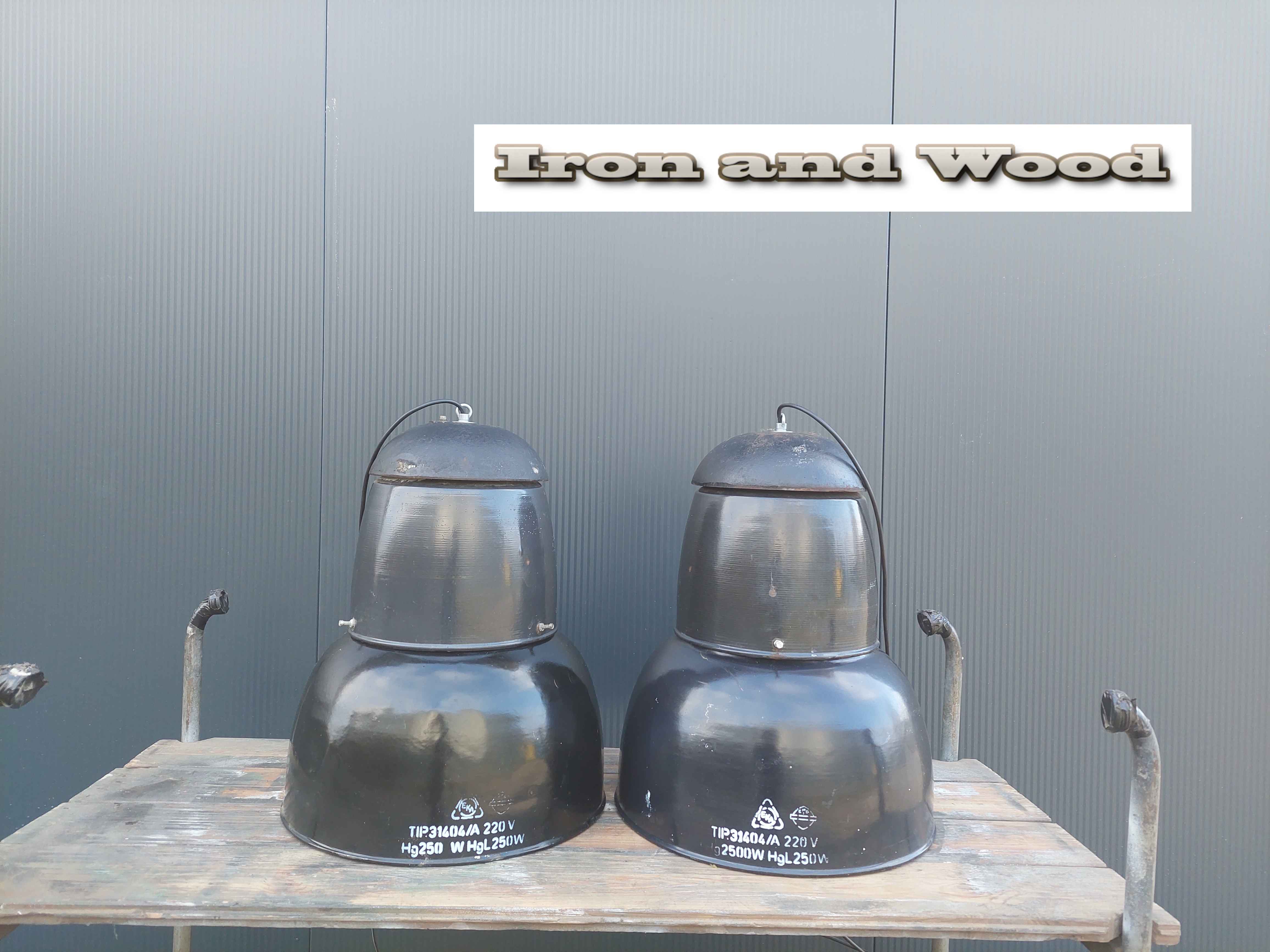 Grote zwarte industriele emaille lampen/ fabriekslampen met opdruk