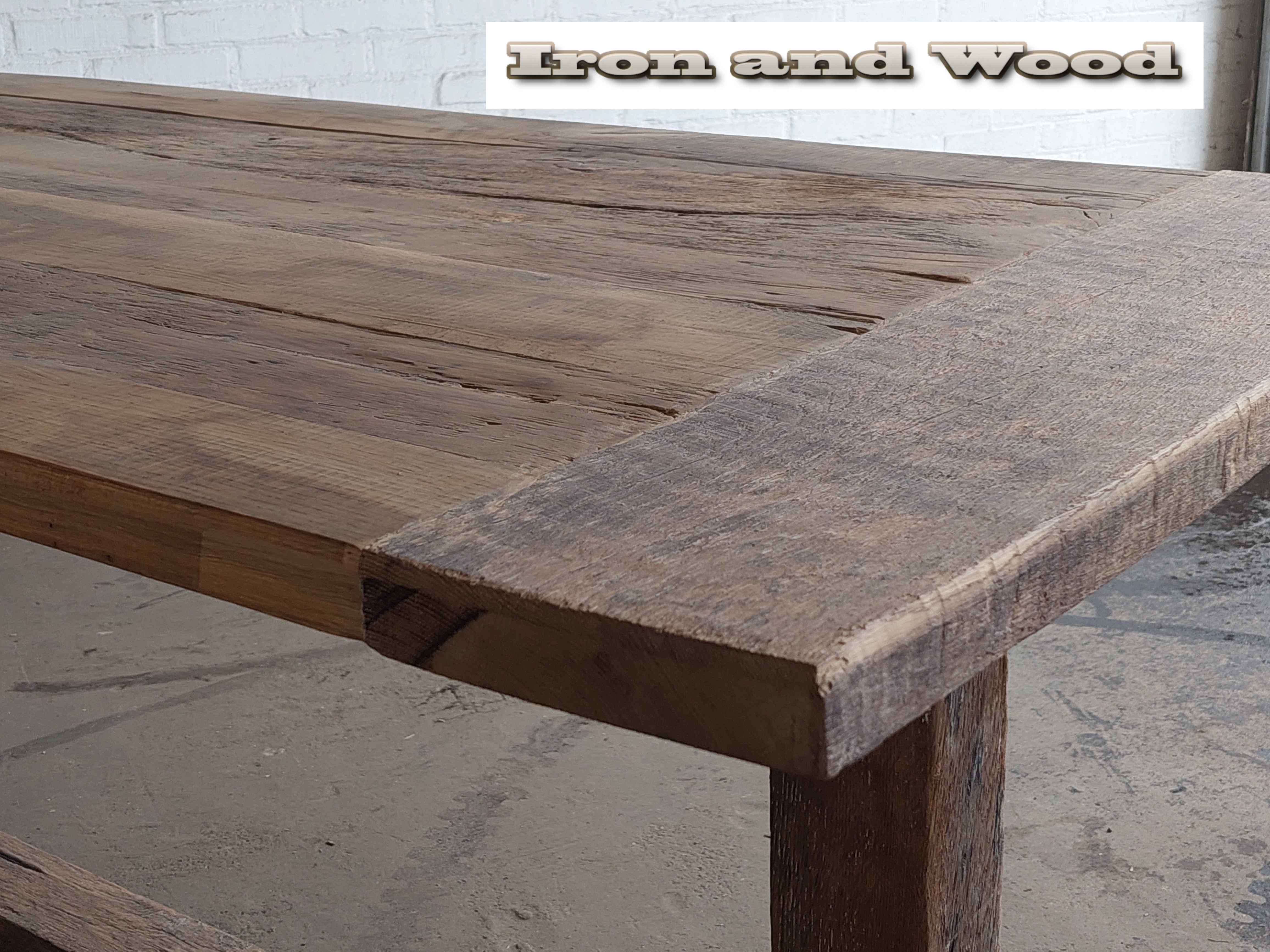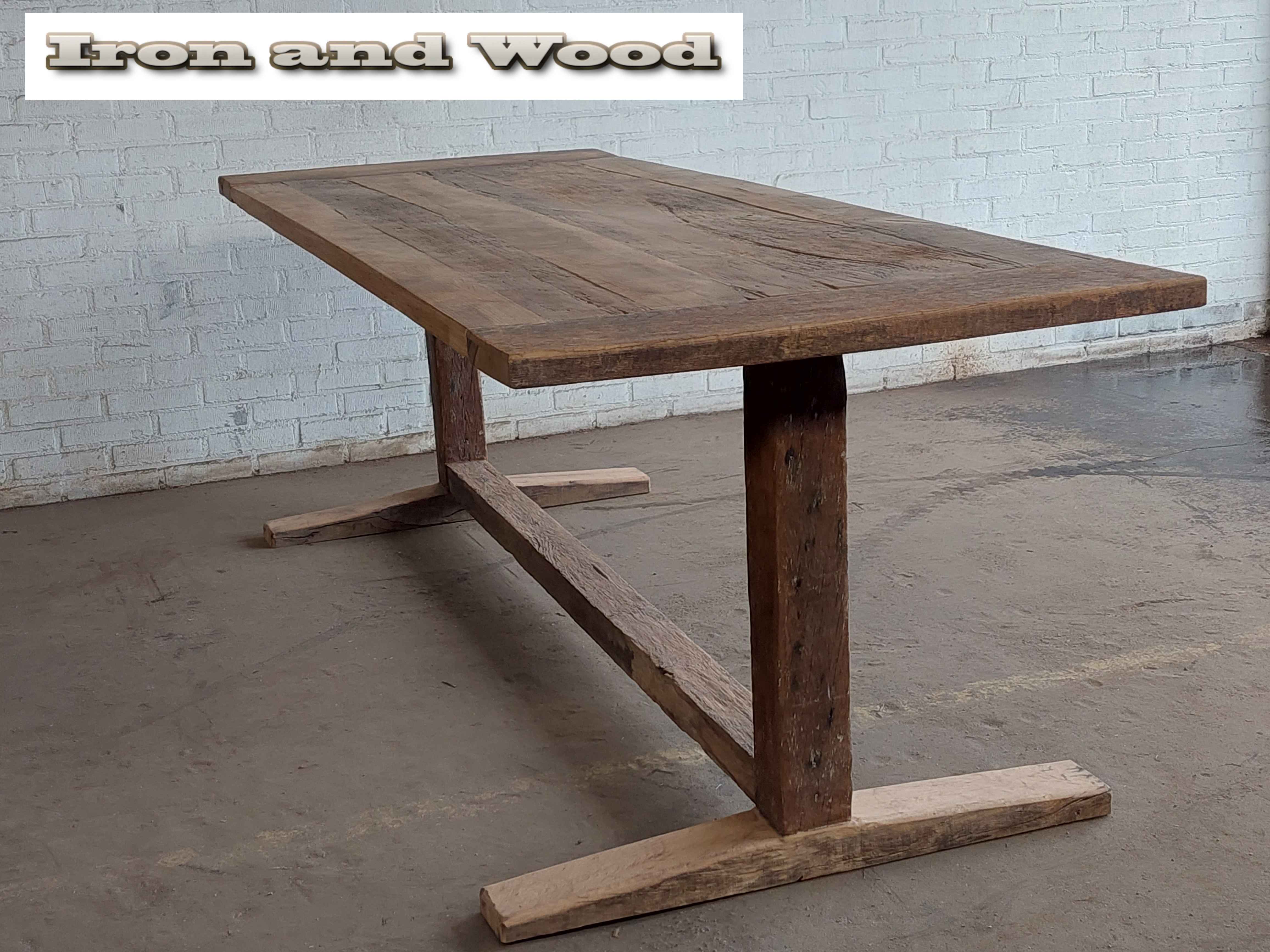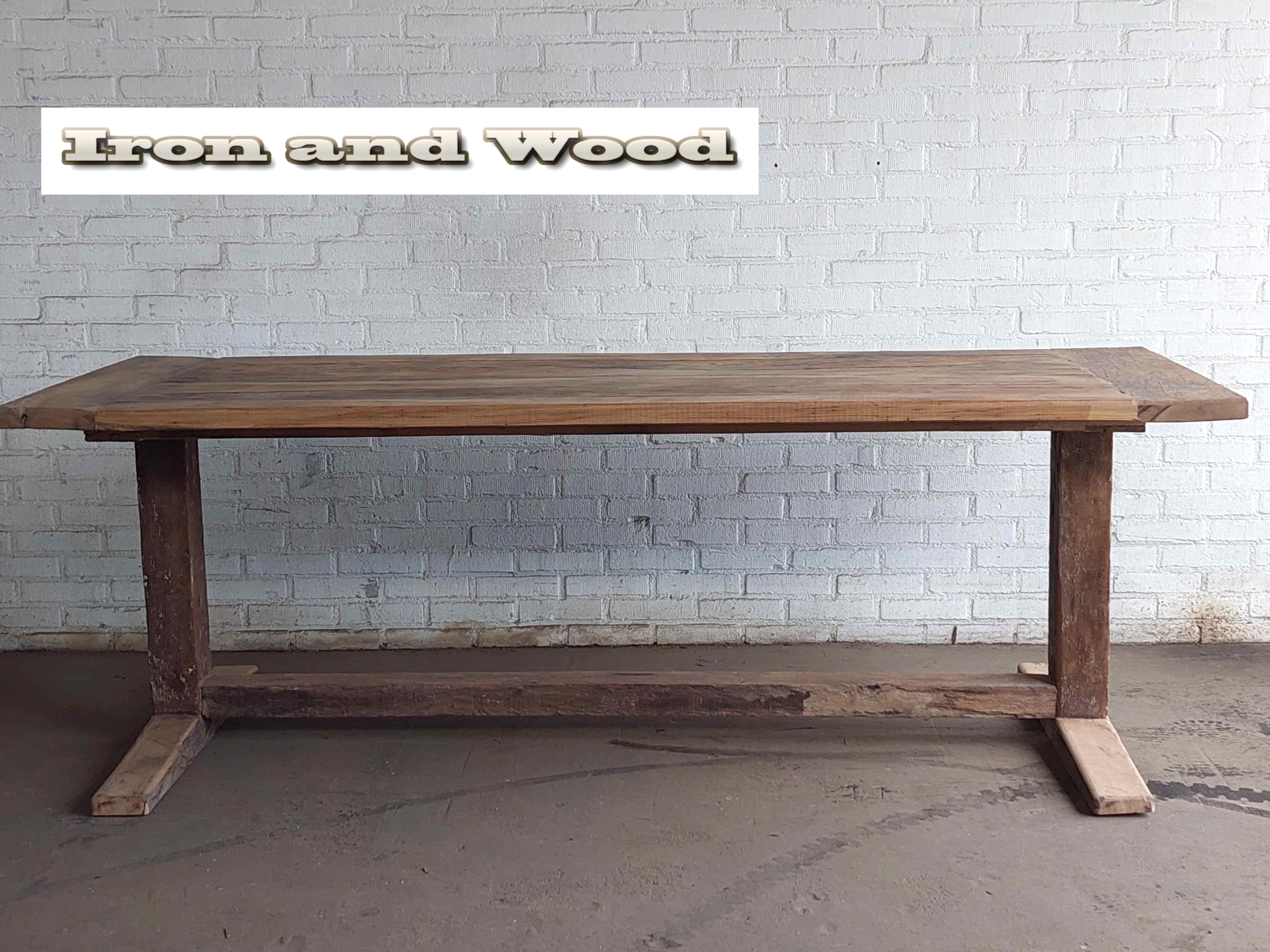 Robuuste oud eiken kloostertafel / kasteeltafel / eettafel . Ambachtelijk gemaakt van oude eiken barnwood.